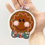 A 3 inch bamboo embroidery hoop featuring a gingerbread face appliqué design.