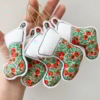 Lightly stuffed, and attached with a metallic cord for hanging.